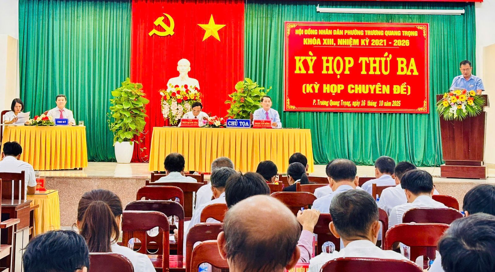 Chiều ngày 16/10/2025, tại Hội trường UBND phường Trương Quang Trọng, Hội đồng nhân dân phường khóa XIII, nhiệm kỳ 2021 - 2026 đã tổ chức Kỳ họp thứ ba (kỳ họp chuyên đề) nhằm xem xét, thảo luận và thông qua các nội dung quan trọng về giao biên chế cán bộ, công chức và quyết định số lượng người làm việc hưởng lương từ ngân sách nhà nước trong các đơn vị sự nghiệp công lập thuộc phường năm 2025.