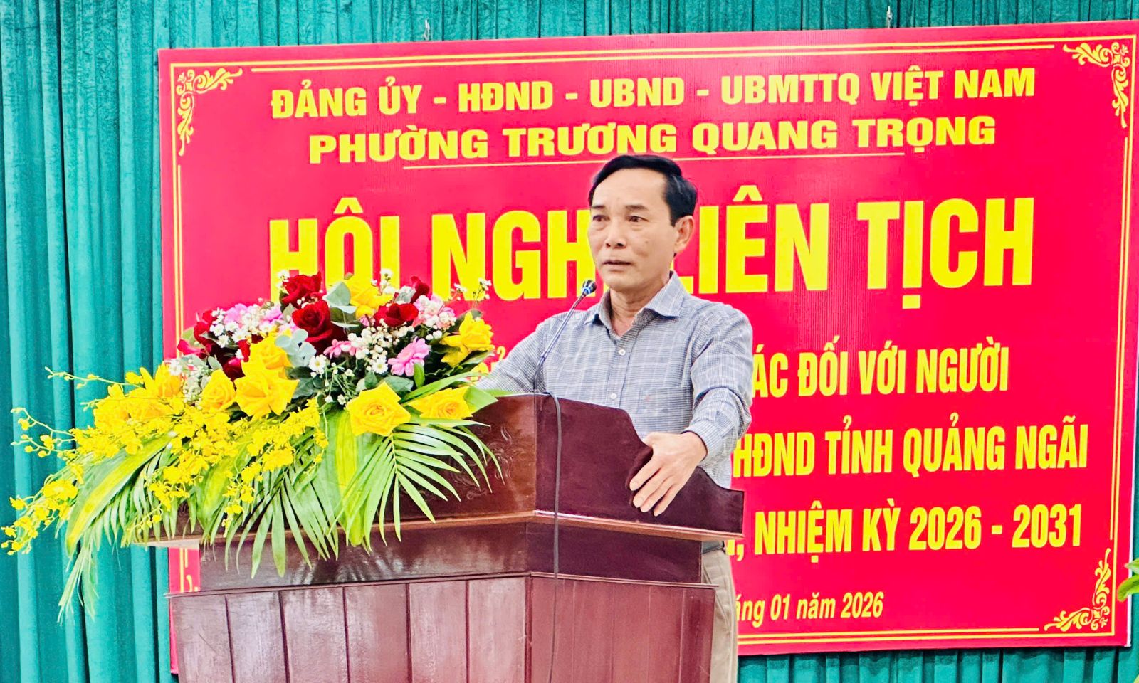 PHƯỜNG TRƯƠNG QUANG TRỌNG TỔ CHỨC HỘI NGHỊ LIÊN TỊCH LẤY Ý KIẾN CỬ TRI NƠI CÔNG TÁC ĐỐI VỚI NGƯỜI ĐƯỢC GIỚI THIỆU ỨNG CỬ ĐẠI BIỂU HĐND TỈNH QUẢNG NGÃI VÀ PHƯỜNG TRƯƠNG QUANG TRỌNG, NHIỆM KỲ 2026 - 2031