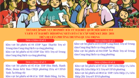 Thực hiện các quy định của pháp luật về bầu cử, ngày 09/01/2026, Ủy ban nhân dân phường Trương Quang Trọng ban hành Quyết định xác định khu vực bỏ phiếu bầu cử đại biểu Quốc hội khóa XVI và đại biểu Hội đồng nhân dân các cấp nhiệm kỳ ...